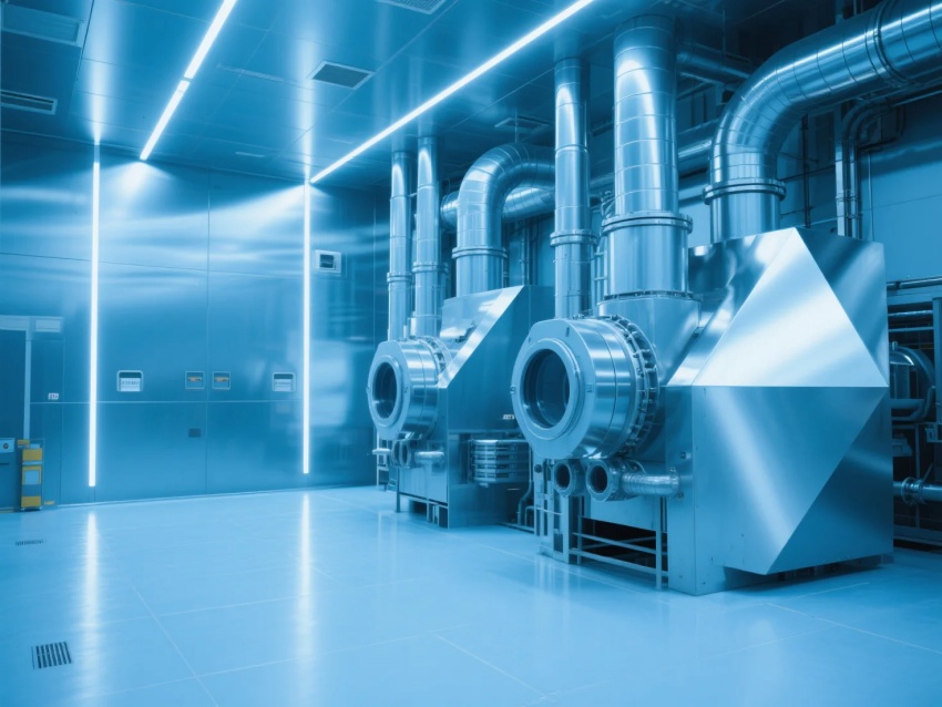 視覺語言上,深空灰設(shè)備基色搭配紫色工藝氣體管路,紅色應(yīng)急系統(tǒng)形成強(qiáng)烈功能警示。通過隱藏式LED燈帶(1,000lux無影照明)與全金屬啞光材質(zhì),實(shí)現(xiàn)納米級(jí)生產(chǎn)與賽博美學(xué)的統(tǒng)一。
