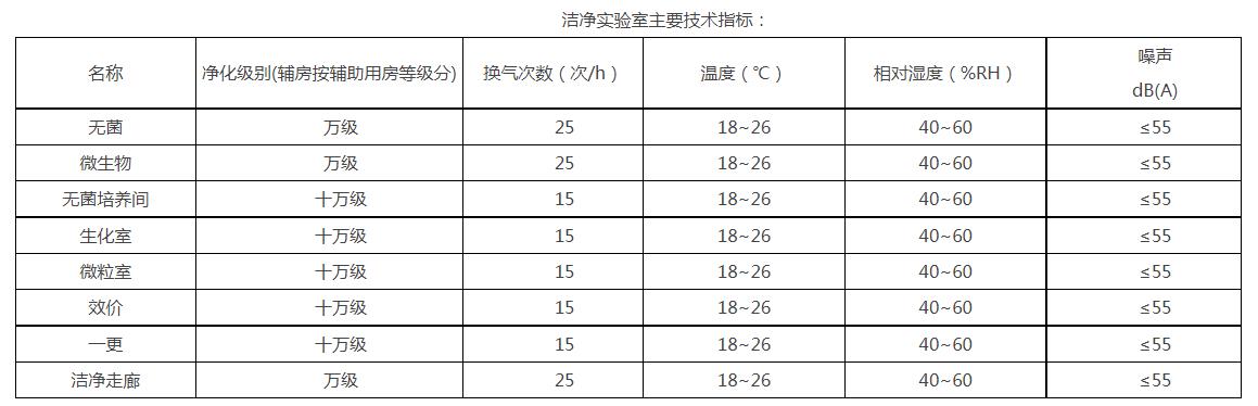一、具體要求:1、設(shè)置要求:無菌室、微生物、培養(yǎng)間、菌落計數(shù)、潔物暫存及配套用房凈化級別為萬級,一更、微粒室、效價室、緩沖室凈化級別為十萬級,其余房間無凈化級別。2、凈化實驗室裝飾裝修工程、凈化空調(diào)工程、電氣工程的設(shè)計和安裝。區(qū)域內(nèi)的實驗室結(jié)構(gòu)、凈化裝修、凈化空調(diào)及自動控制系統(tǒng)、供電照明、弱電系統(tǒng)。