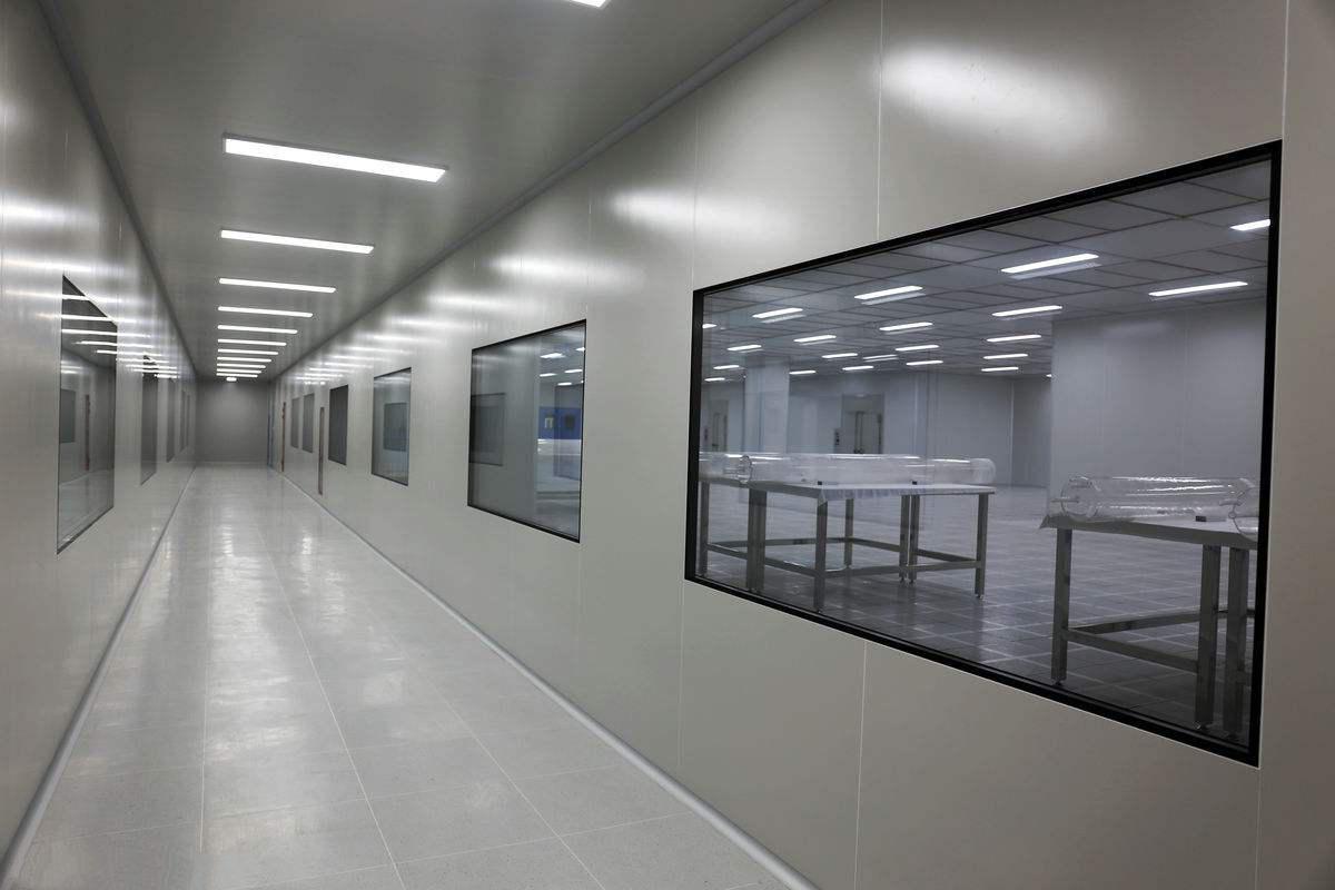 4、潔凈廠房的建設上要注意走廊設計,它使?jié)崈魠^(qū)和外界有一個緩沖的區(qū)域,對于外界的污染也有一個輔助凈化的作用。門窗和內(nèi)墻面應該平坦,不設置窗臺,結(jié)構(gòu)方式要充分考慮空氣中對水分的密封,防止水粒子污染。為了防止室內(nèi)溫度差的原因產(chǎn)生露水,室內(nèi)不同潔凈度的房間之間要密封好,門窗選材要不易變形、氣密性好、不積塵,便于打掃。一般潔凈工程不會采用木質(zhì)品,大都是金屬材料防止受潮發(fā)霉、變形。墻面和窗戶都不留窗臺和門檻,以雙層窗為主。
