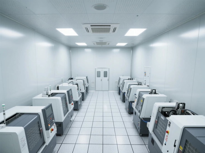 模塊化功能單元:劃分微米級(jí)加工區(qū)(黃光照明)、光學(xué)檢測(cè)區(qū)(黑箱設(shè)計(jì))、物料緩存區(qū)(負(fù)壓隔離)