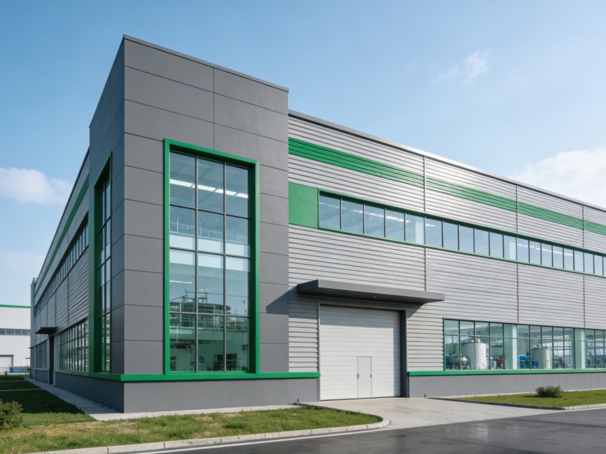 本次呈現(xiàn)的生物制藥生產(chǎn)車間,整體風(fēng)格嚴(yán)謹(jǐn)統(tǒng)一,精準(zhǔn)適配生物制藥無菌、潔凈的核心生產(chǎn)需求。廠房外立面采用淺灰色工業(yè)板材搭配高密封玻璃幕墻,既彰顯生物制藥場所的專業(yè)沉穩(wěn),又保障建筑的保溫隔音與采光性能,入口區(qū)域預(yù)留風(fēng)淋室及無菌緩沖間位置,從源頭把控潔凈門檻。