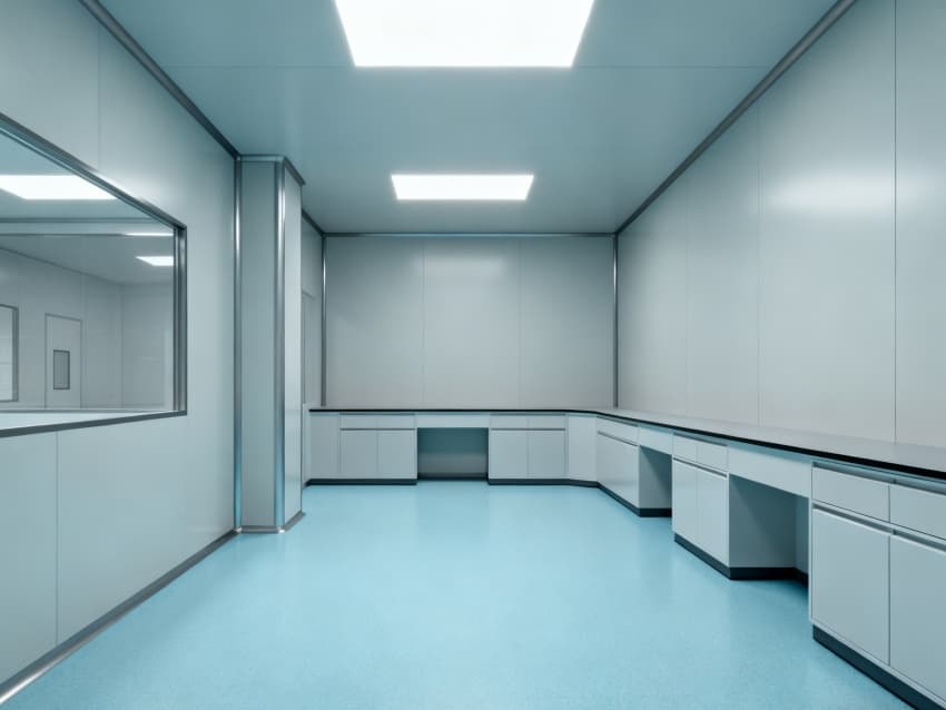 內(nèi)部按研發(fā)流程劃分六大功能區(qū):核心實(shí)驗(yàn)區(qū)(淺藍(lán)防腐蝕地面、淺灰抗菌墻面)預(yù)留8米柱距,滿足液相色譜儀、細(xì)胞培養(yǎng)箱等設(shè)備布局;樣品處理區(qū)設(shè)雙層通風(fēng)櫥,避免試劑交叉污染;試劑儲(chǔ)存區(qū)配防爆柜體,適配?;饭芸?;無(wú)菌操作預(yù)留區(qū)保留萬(wàn)級(jí)潔凈基礎(chǔ),可快速升級(jí)凈化等級(jí);數(shù)據(jù)分析區(qū)銜接實(shí)驗(yàn)區(qū),預(yù)留辦公與數(shù)據(jù)終端位置;人員緩沖區(qū)設(shè)更衣、消毒通道,防止外部污染帶入。整體空曠布局兼顧靈活研發(fā)與合規(guī)要求,為安徽藥企提供從基礎(chǔ)研究到中試的一體化空間。