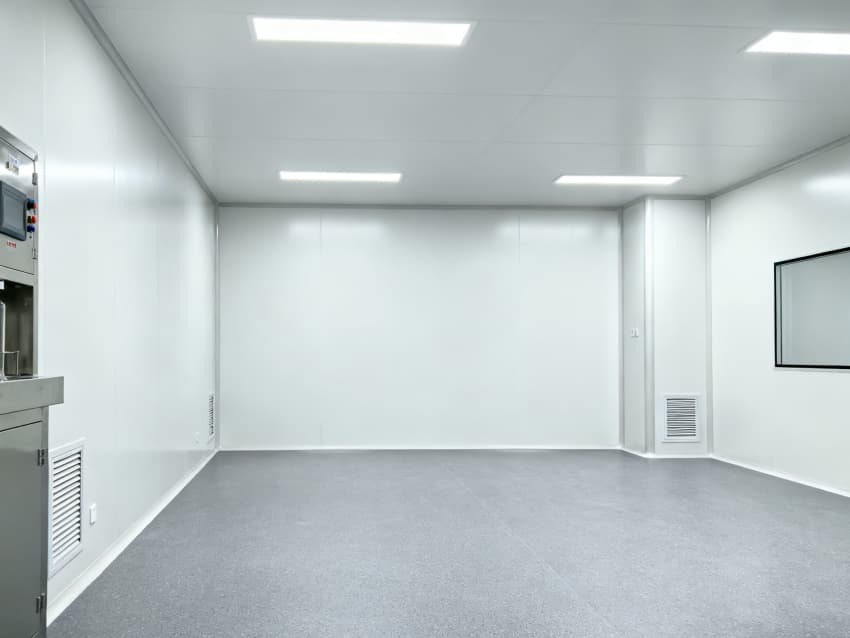 施工環節強化保溫密封與潔凈適配。圍護結構選用導熱系數≤0.03W/(m·K)的彩鋼板,拼接處打滿專用潔凈密封膠,膠縫寬度3-5mm無氣泡,杜絕冷熱交換;墻角做≥50mm圓弧處理,兼顧防積塵與保溫。地面鋪設保溫環氧自流平,基層加設保溫層,避免地面熱傳導引發溫濕波動;門窗采用斷橋鋁+雙層中空Low-E玻璃,配備雙層密封膠條,防止縫隙漏風。施工中需保護保溫層與密封膠,避免交叉作業破壞。