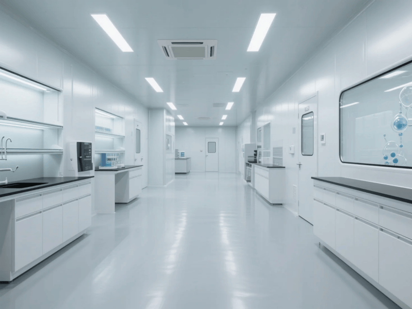 本實(shí)驗(yàn)室嚴(yán)格遵循《生物安全實(shí)驗(yàn)室建筑技術(shù)規(guī)范》GB50346標(biāo)準(zhǔn),以"科技純凈"為設(shè)計(jì)理念,通過(guò)象牙白彩鋼板墻體與淺灰環(huán)氧樹(shù)脂地坪的極簡(jiǎn)組合,打造符合P2防護(hù)要求的現(xiàn)代化研發(fā)空間。
