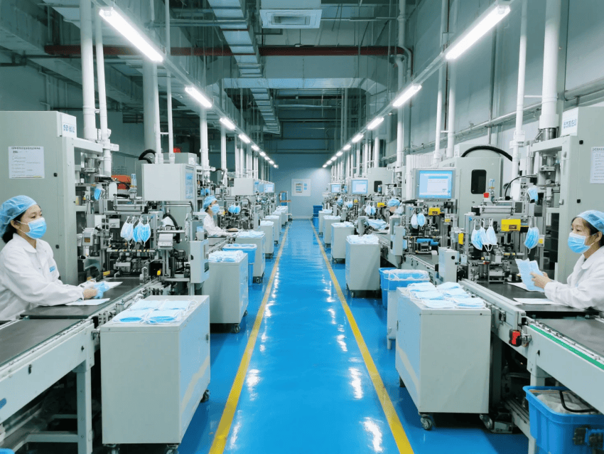 本方案采用"醫(yī)療工業(yè)極簡(jiǎn)風(fēng)",符合YY/T0969-2013口罩行業(yè)標(biāo)準(zhǔn)。車間按功能分區(qū): 原料區(qū)(熔噴布恒溫儲(chǔ)存23±2℃) 生產(chǎn)區(qū)(超聲波焊接噪音<75dB) 滅菌